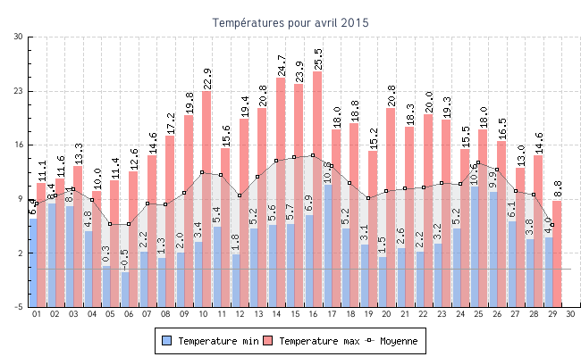 | 05 | 0.3 °C | 11.4 °C | 5.8 °C | 2.2 km/h (15.5 km/h) | N |